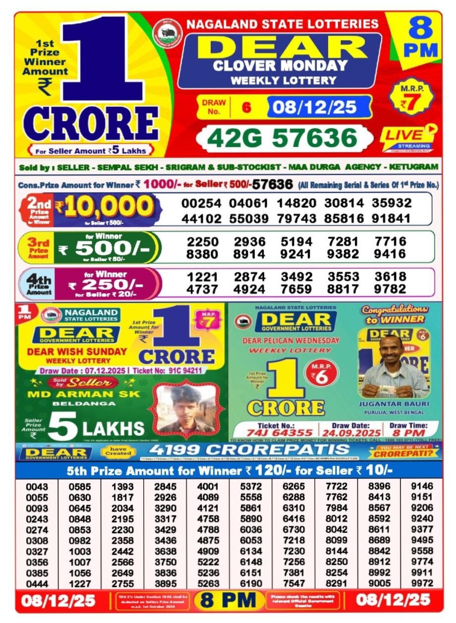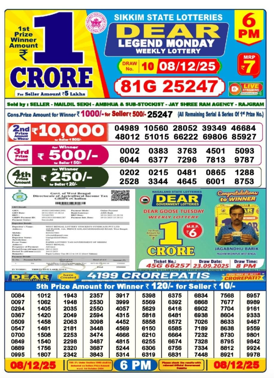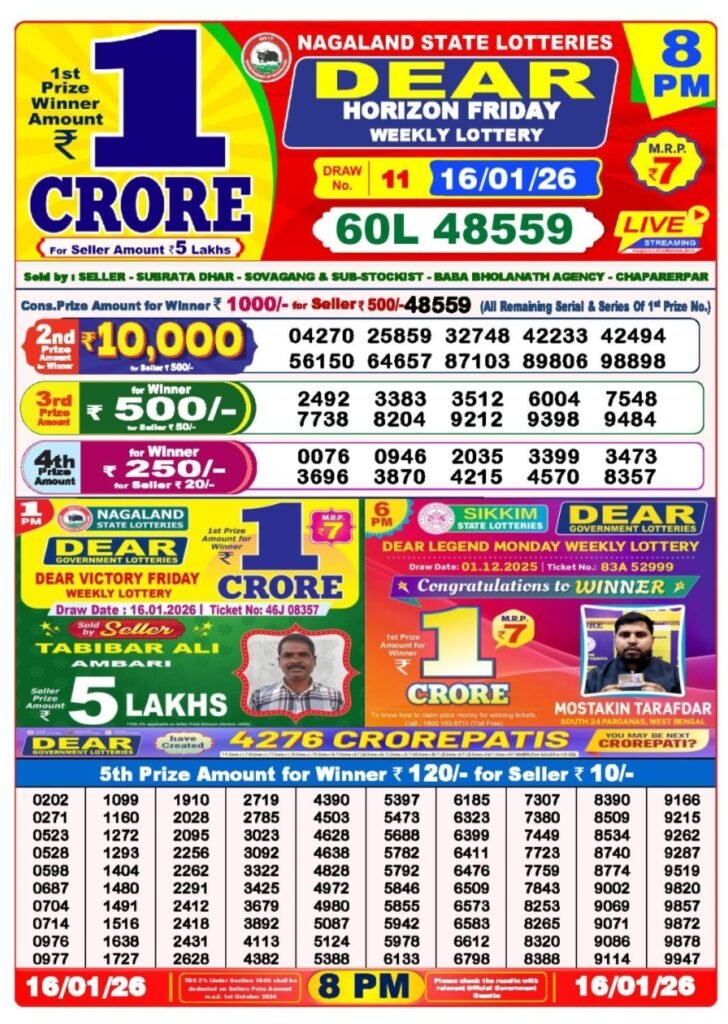 Dear Lottery/ ডিয়ার লটারি, also popularly known as Lottery Sambad, is one of India’s most well-known and trusted lottery systems. It is officially run by the state governments of Nagaland, Sikkim, and West Bengal, and holds daily draws that attract thousands of hopeful participants across the country.