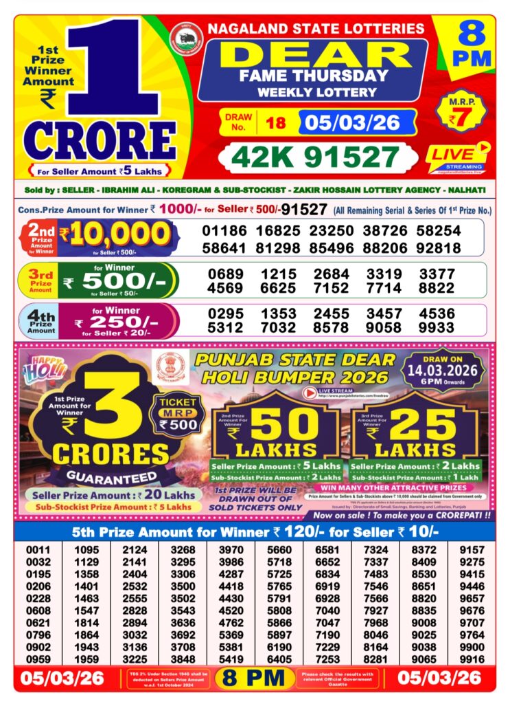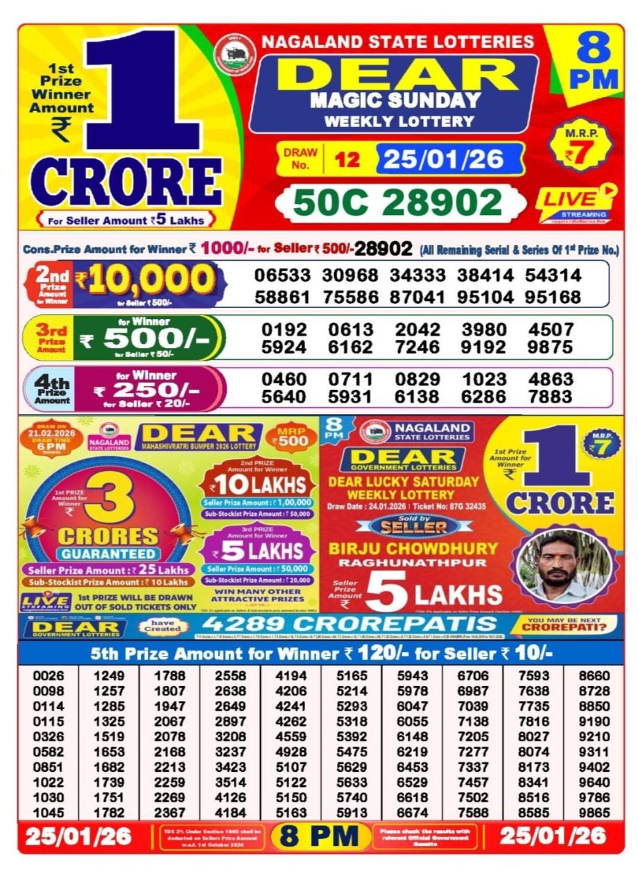 Dear Lottery is conducted, regulated, and supervised by the respective State Government Lottery Departments. For example, the Nagaland State Lottery is managed by the Directorate of Nagaland State Lotteries, ensuring transparency, legality, and proper prize distribution.