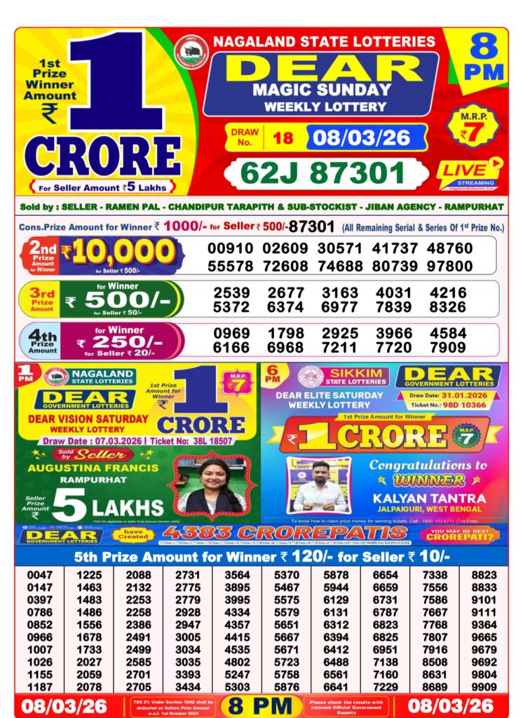 Dear Lottery 10-03-2026 Result Today – 8PM