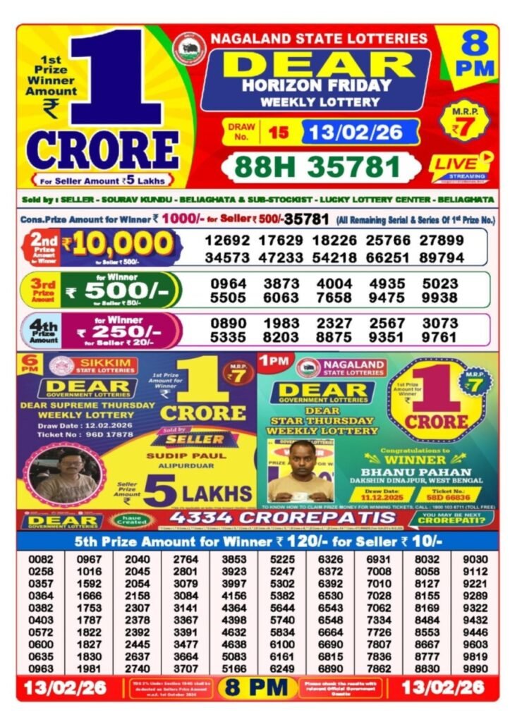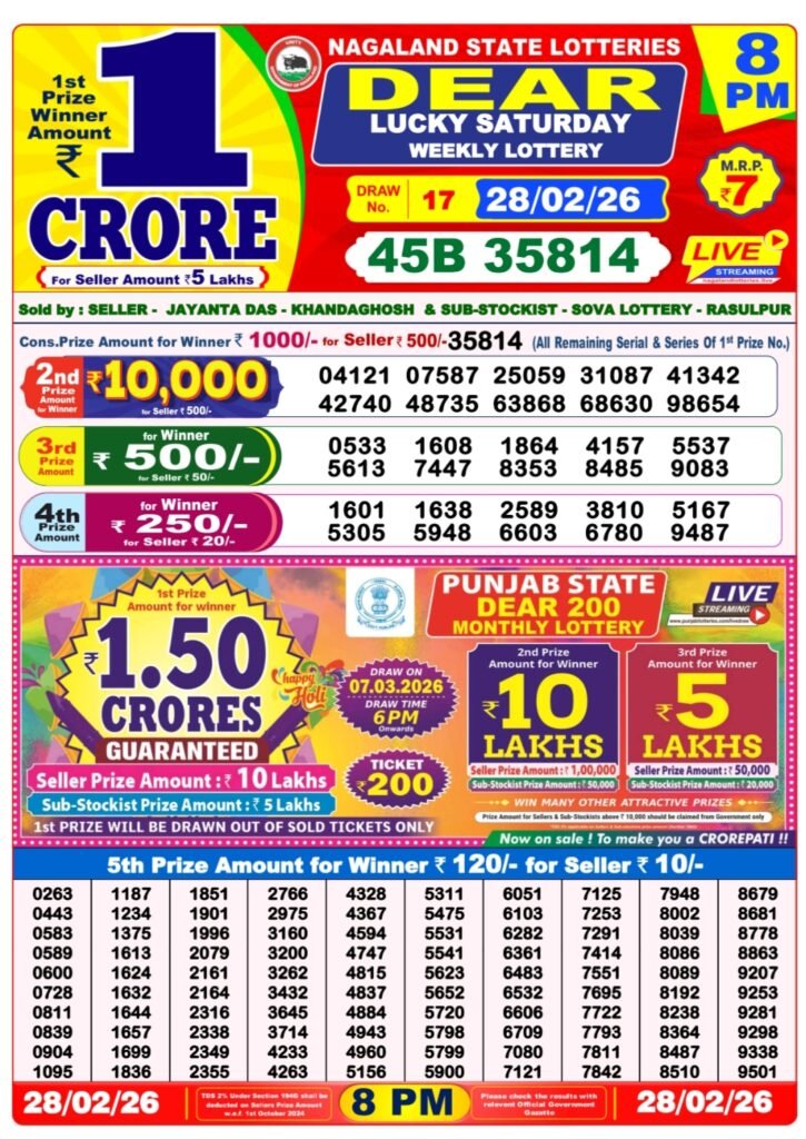 The results for today’s 8 PM draw in Nagaland can be found below. Simply scroll down to view the outcome.